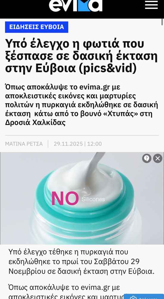 Μετά από επικοινωνία του evia online και του Παναγιώτη Μουσσά μέλους της ΕΣΗΕΑ, με τον Διοικητή της πυροσβεστικής υπηρεσίας Ευβοίας Ταξίαρχο κ. Μούτσελο μας επισημάνθηκε ότι ήταν ελεγχόμενη καύση από πολίτη, που τηρούσε μάλιστα όλα τα μέτρα που προβλέπονται καθώς και ότι ΔΕΝ σβήστηκε φωτιά από τους πυροσβέστες που αποχώρησαν από το σημείο.