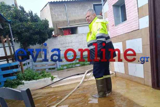 Εύβοια: Η πυροσβεστική και οι εθελοντές της ΕΣΔΔΕ συνεχίζουν να συνδράμουν σε σπίτια που πλημμύρισαν λόγω της κακοκαιρίας Byron