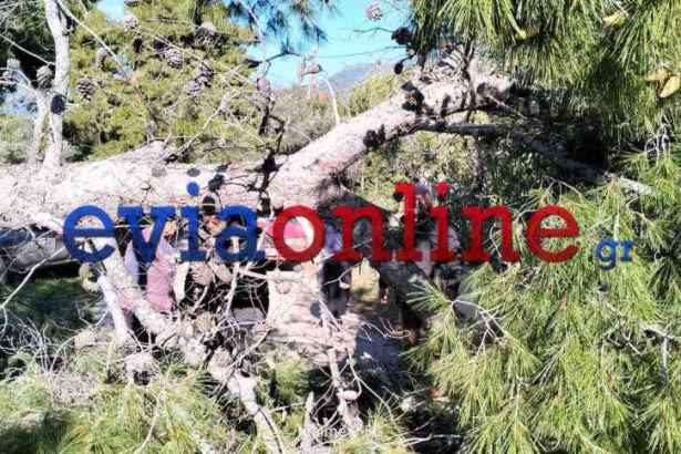 Όπως μετέδωσε το evia online λόγω των θυελλωδών ανέμων που σαρώνουν από το πρωί την Εύβοια ένα μεγάλο πεύκο έχει πέσει στα Πολιτικά στο Δήμο Διρφύων Μεσσαπίων στην Περιοχή Πευκιάς με αποτέλεσμα να έχει κλείσει δρόμος και να μην μπορούν να μετακινηθούν οι κάτοικοι. Στο σημείο επιχειρούν στελέχη εθελοντών της ΣΕΑΚ Πολιτικών Νεροτριβιάς.