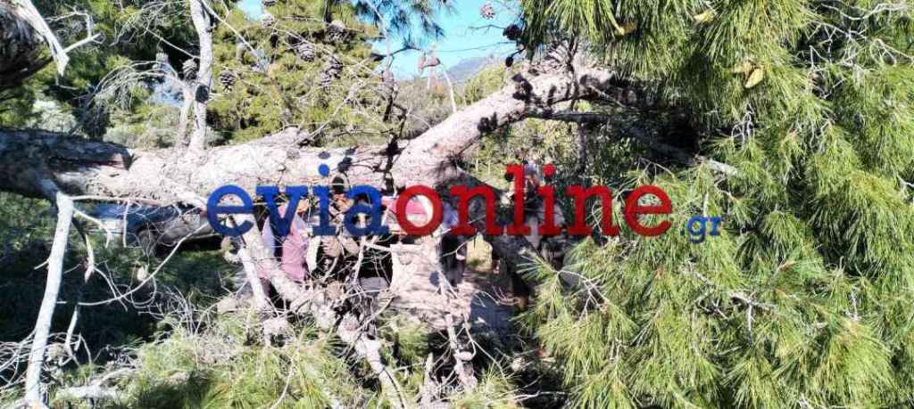 Εύβοια: Πτώση μεγάλου Πεύκου σε δρόμο Δήμου- Αποκλεισμένοι κάτοικοι (Φωτο)