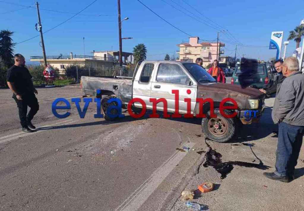 Σύμφωνα με αποκλειστικές πληροφορίες του evia online πριν από λίγο πρωί Δευτέρας 29 Δεκεμβρίου σημειώθηκε σφοδρή σύγκρουση αυτοκινήτου με αγροτικό στην περιοχή του Μαλακώντα στο Δήμο Ερέτριας. Παρά ταύτα ευτυχώς κανείς από τους δύο οδηγούς δεν χτύπησε. Στο σημείο έφτασε άμεσα η αστυνομία και εθελοντές της ΕΣΔΔΕ που καθάρισαν τον χώρο από εξαρτήματα που εκτοξεύτηκαν και έριξαν πριονίδι στα λάδια για την αποφυγή νέου ατυχήματος.