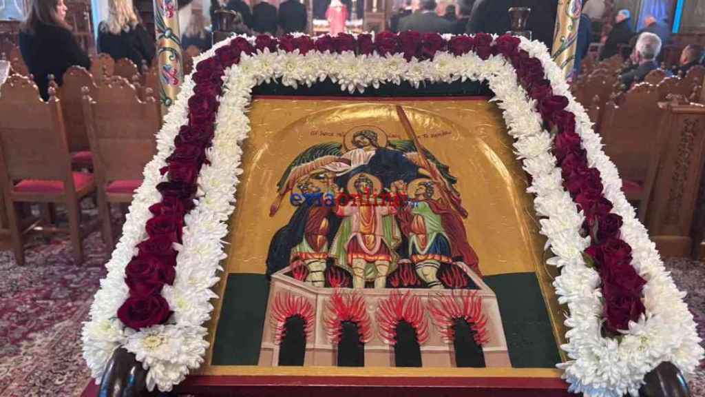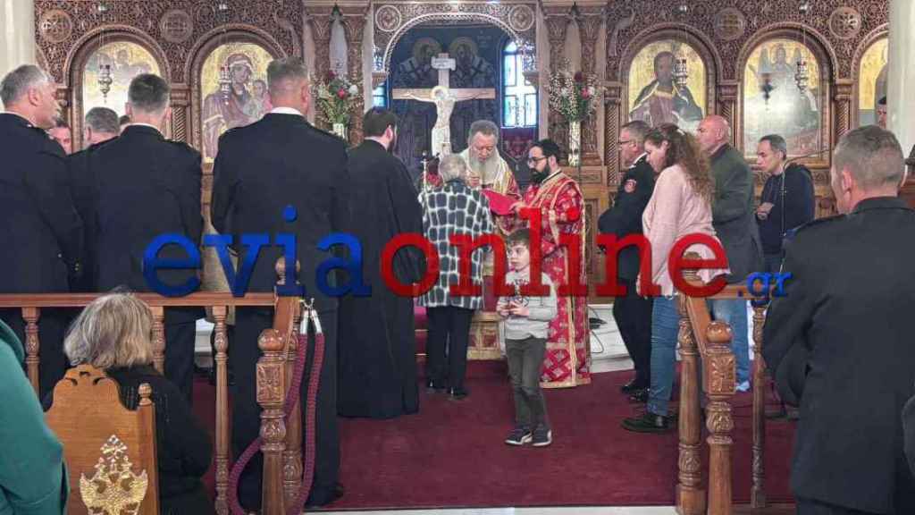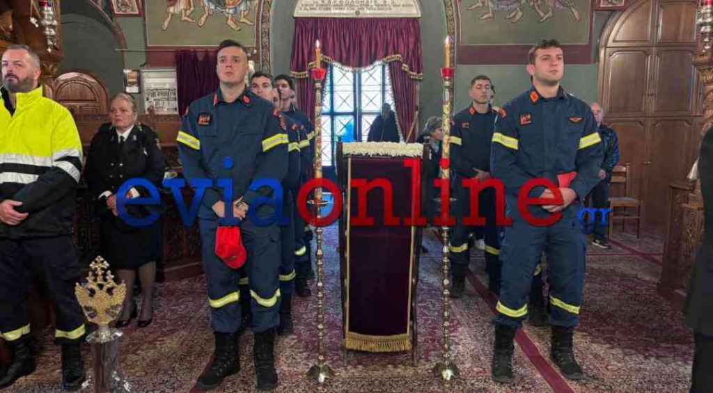 Σε εξέλιξη βρίσκεται η δοξολογία της εορτής των Αγίων Τριών Παίδων εν Καμίνω, στον Ιερό Ναό Αγίου Δημητρίου χοροστατούντος του Σεβασμιωτάτου Μητροπολίτη Χαλκίδας κ. Χρυσοστόμου. Παρούσα στον εορτασμό των προστατών της πυροσβεστικής η ηγεσία του Σώματος στην Εύβοια με επικεφαλής τον Ταξίαρχο Λουκά Μούτσελο.