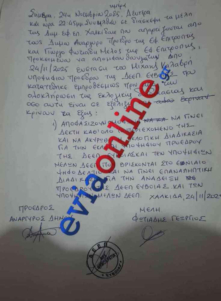 Η απόφαση φέρει ημερομηνία 24/11/2025 και τη σφραγίδα της ΔΕΕΠ Εύβοιας.