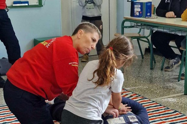 στην βασική υποστήριξη ζωής, ορθή χρήση αυτόματου εξωτερικού Απινιδωτή, πνιγμονή από ξένο σώμα, και θέση ασφαλείας –  (ανάνηψης) σε μαθητές και εκπαιδευτικούς.