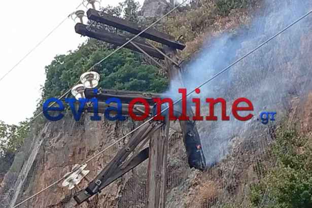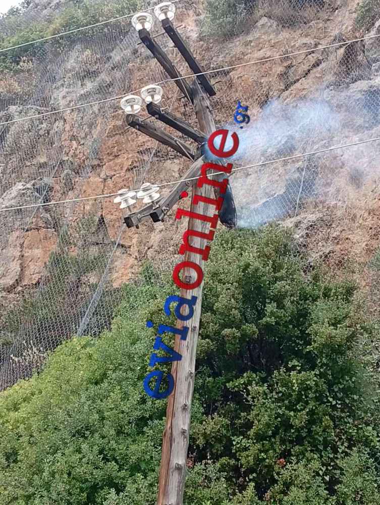 Εύβοια- φωτιά: Οι πρώτες εικόνες από την κολώνα του ΔΕΔΔΗΕ που άρπαξε φωτιά