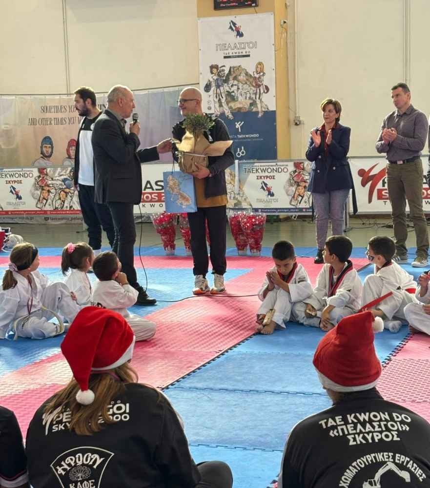 -Ξεκίνησε το Σάββατο το πρωί με την εκδήλωση του Συλλόγου TAEKWONDO “ΠΕΛΑΣΓΟΙ” ΣΚΥΡΟΣ και τη χριστουγεννιάτικη γιορτή των μικρών αθλητών στο Κλειστό Γυμναστήριο της Σκύρου. Παρών ο Παραολυμπιονίκης κος Βασίλης Παναγιωτόπουλος, ο Δήμαρχος Σκύρου και ο Διευθυντής Επιχειρήσεων της 135 Σμηναρχίας Μάχης, οι οποίοι απένειμαν μετάλλια στα παιδιά, ενώ ο Άγιος Βασίλης μοίραζε γλυκίσματα και χαμόγελα.
