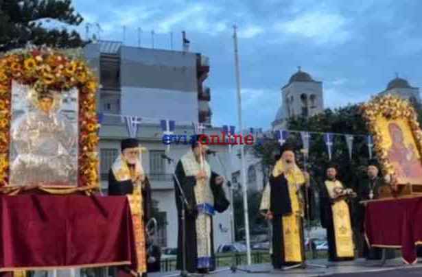 Πραγματοποιήθηκε σε κλίμα κατάνυξης το απόγευμα της Παρασκευής 18 Οκτωβρίου -μετά την τελετή υποδοχής της ιερής και θαυματουργής εικόνας της Παναγίας Ελεούσας Θεσσαλονίκης- λιτανεία με επικεφαλής τον Σεβασμιώτατο Ποιμενάρχη μας, Μητροπολίτη Χαλκίδος κ. Χρυσόστομο ,τον Χαλκιδέο Σεβασμιώτατο Μητροπολίτη Θεσσαλονίκης κ. Φιλόθεο, τον Θεοφιλέστατο Επίσκοπο Σκοπέλου κ. Νικόδημο, ιερείς, και την συμμετοχή πλήθους πιστών.