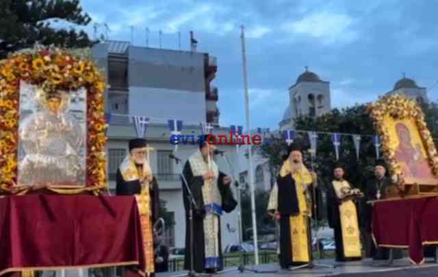 Εν συνεχεία, τελέσθηκε δέηση, απεδόθησαν τιμές και κατόπιν, κλήρος και λαός, με λιτανευτική πομπή, συνόδευσαν το ιερό Εικόνισμα της Κυρίας Θεοτόκου στον Μητροπολιτικό Ιερό Ναό του Αγίου Δημητρίου Χαλκίδος, όπου ετελέσθη Ιερά Παράκληση προς την Υπεραγία Θεοτόκο.