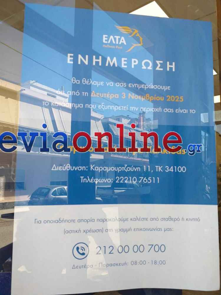 >>> Αντιδράσεις στην Ερέτρια για το κλείσιμο του Ταχυδρομείου – Επιστολή διαμαρτυρίας από τον Δήμαρχο Νίκο Γουρνή