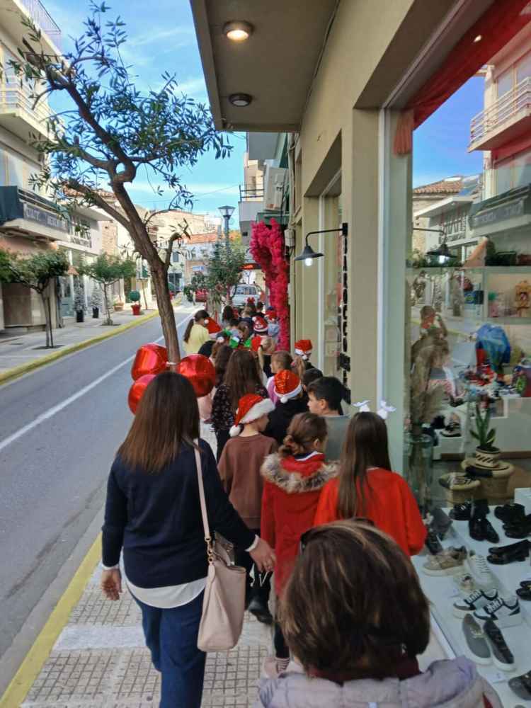 . Οι μαθητές των τμημάτων Γ1 και Ε1 τραγούδησαν στους δρόμους της πόλης τα κάλαντα των Χριστουγέννων και της Πρωτοχρονιάς, μεταφέροντας το γιορτινό κλίμα στους κατοίκους.