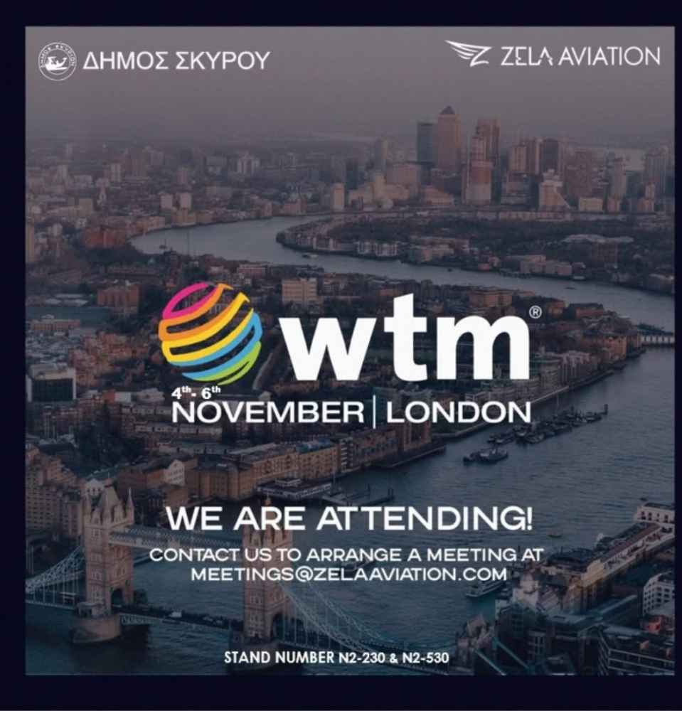 Δήμος Σκύρου: ΠΑΡΟΥΣΙΑ ΜΕ ΤΗ ZELA AVIATION ΣΤΗΝ διεθνούς εμβέλειας ΤΟΥΡΙΣΤΙΚΗ ΕΚΘΕΣΗ WTM ΣΤΟ ΛΟΝΔΙΝΟ 4-6 ΝΟΕ 2025!