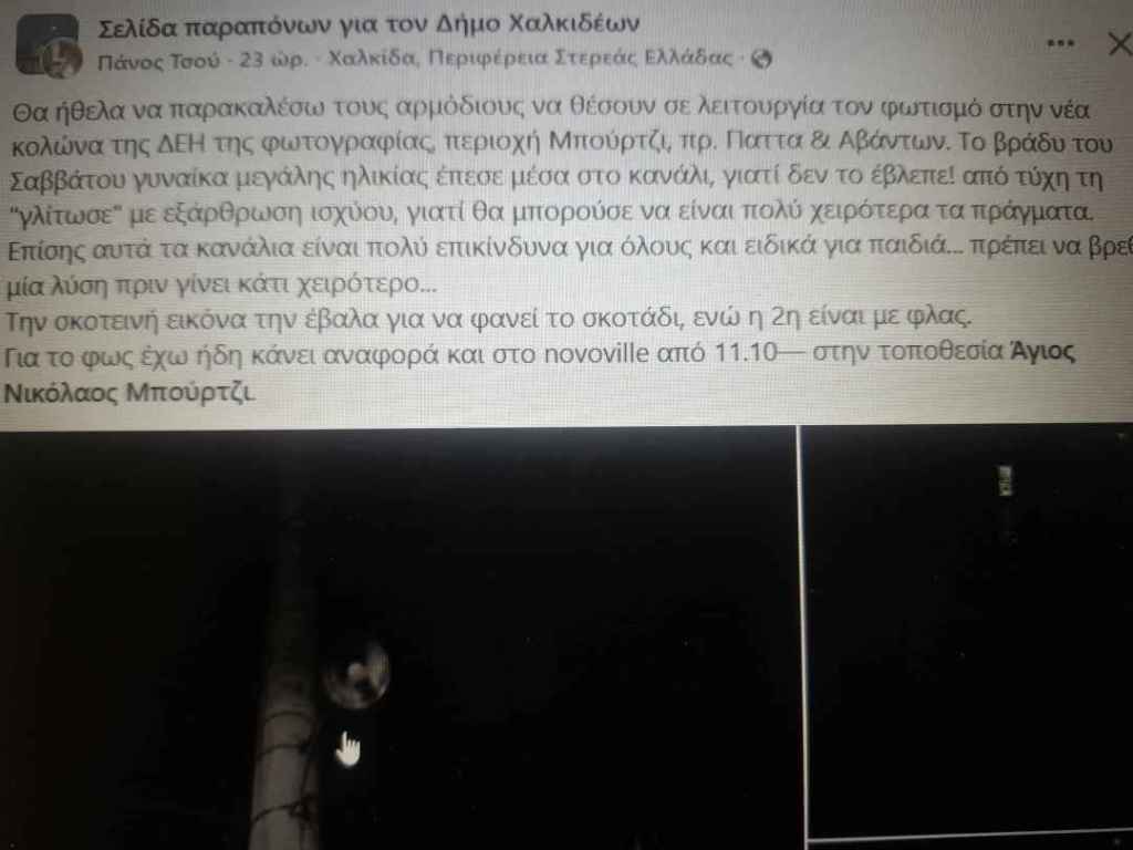 «Για το φως έχω ήδη κάνει αναφορά και στο Novoville από 11 Οκτωβρίου, στην τοποθεσία Άγιος Νικόλαος Μπούρτζι. Έβαλα και φωτογραφίες — η μία σκοτεινή για να φανεί το πρόβλημα, η άλλη με φλας. Πρέπει να βρεθεί λύση πριν γίνει κάτι χειρότερο».