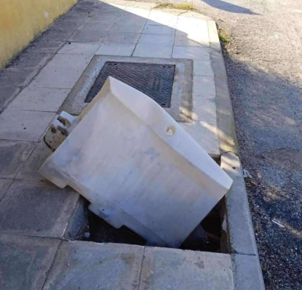 Ακόμα ένα σημείο – παγίδα, από τα πολλά που απαριθμεί ο Δήμος Χαλκιδέων, εντόπισε κάτοικος της περιοχής Έξω Παναγίτσα, όπου και το ανάρτησε σε σελίδα κοινωνικού ενδιαφέροντος στο facebook. Όπως φαίνεται και στη φωτογραφία που δημοσίευσε, περπατώντας προς Χαλκίδα από την Έξω Παναγίτσα λίγο πριν τη Λιανή Άμμο, το πεζοδρόμιο παρουσιάζει μια τεράστια τρύπα που μάλιστα, προφανώς για να αποφευχθεί κάποιο ατύχημα, έχει τοποθετηθεί – άγνωστο από ποιον – προστατευτική πλαστική μπάρα. Πρόκειται για άκρως επικίνδυνη ζημιά που θα πρέπει να αποκατασταθεί άμεσα.