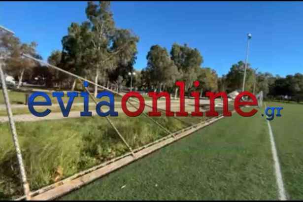 Δήμος Χαλκιδέων: Σοκαριστικό βίντεο από την περίφραξη γηπέδου που ξήλωσαν οι θυελλώδεις άνεμοι- Η έκκληση του Δήμου στους πολίτες