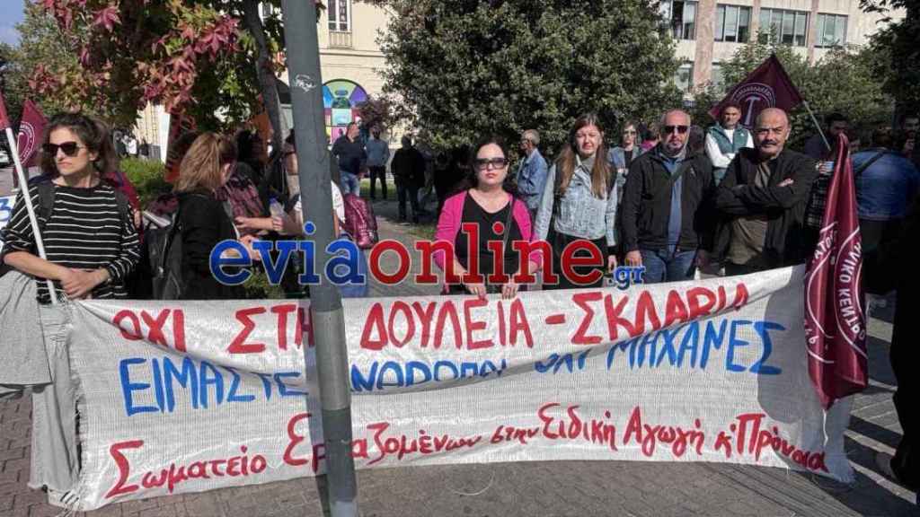 Εργαζόμενοι συγκεντρώθηκαν στο χώρο πίσω από τα δικαστήρια Χαλκίδας και διαμαρτυρήθηκαν