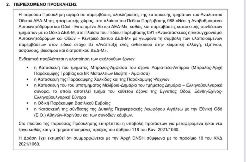 Η συγκεκριμένη χρηματοδοτική αναθεώρηση δεν αφορά μόνο την Εύβοια. Περιλαμβάνει και άλλα σημαντικά έργα μεταφορών, όπως την Παράκαμψη Χαλκίδας–Ψαχνών, τμήματα του άξονα Μπράλος – Άμφισσα, τον κάθετο οδικό άξονα Ξάνθη – Εχίνος, καθώς και τη διασύνδεση της Δυτικής Περιφερειακής Αιγάλεω με την Εθνική Οδό Αθηνών–Κορίνθου. Πρόκειται για παρεμβάσεις που αναμένεται να αναδιαμορφώσουν τον χάρτη των μετακινήσεων σε πολλές περιοχές της χώρας.