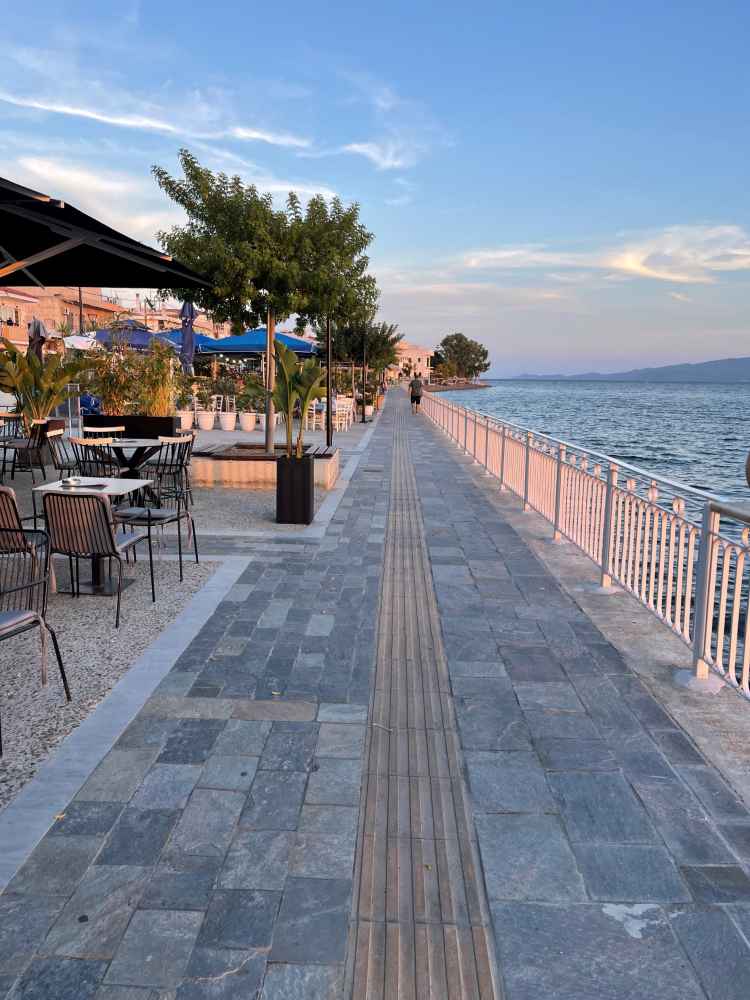 Το έργο, που χρηματοδοτεί και υλοποιεί η Περιφέρεια, στοχεύει στην περαιτέρω αναβάθμιση του παραλιακού μετώπου και τη δημιουργία ενός καλαίσθητου, λειτουργικού χώρου εκδηλώσεων δίπλα στη θάλασσα.