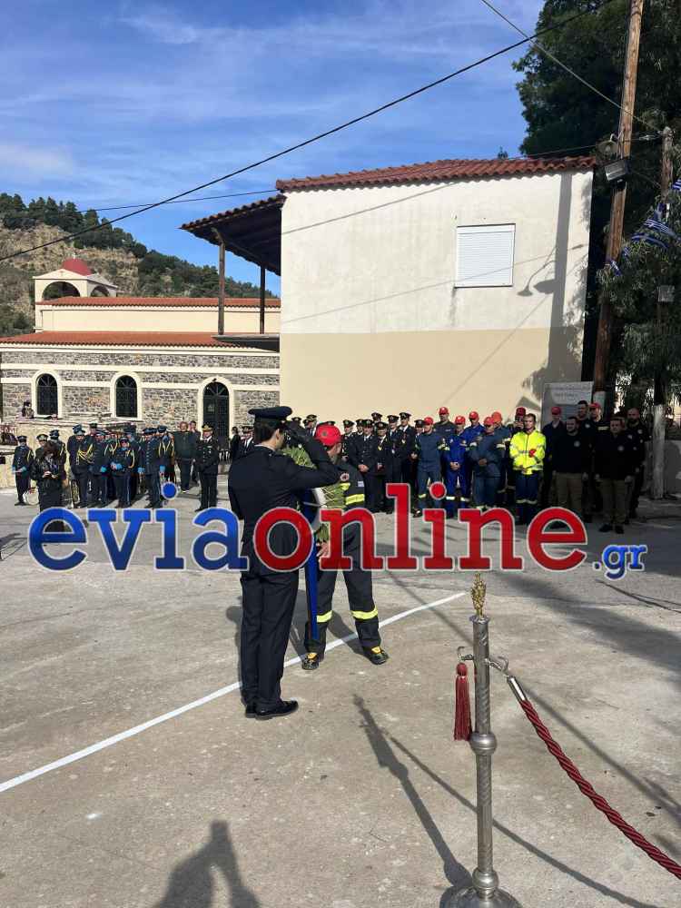 Η πραγματικά εξαιρετικά οργανωμένη εκδήλωση από την διοίκηση της Πυροσβεστικής Ευβοίας που παρακολούθησε από την αρχή το evia online πραγματοποιήθηκε στο Μίστρο Ευβοίας, πλησίον του Ιερού Ναού Αγίου Αθανασίου, στο Μνημείο Πεσόντων Πυροσβεστών – Εθελοντών “Παίδες εν Καμίνω”.
