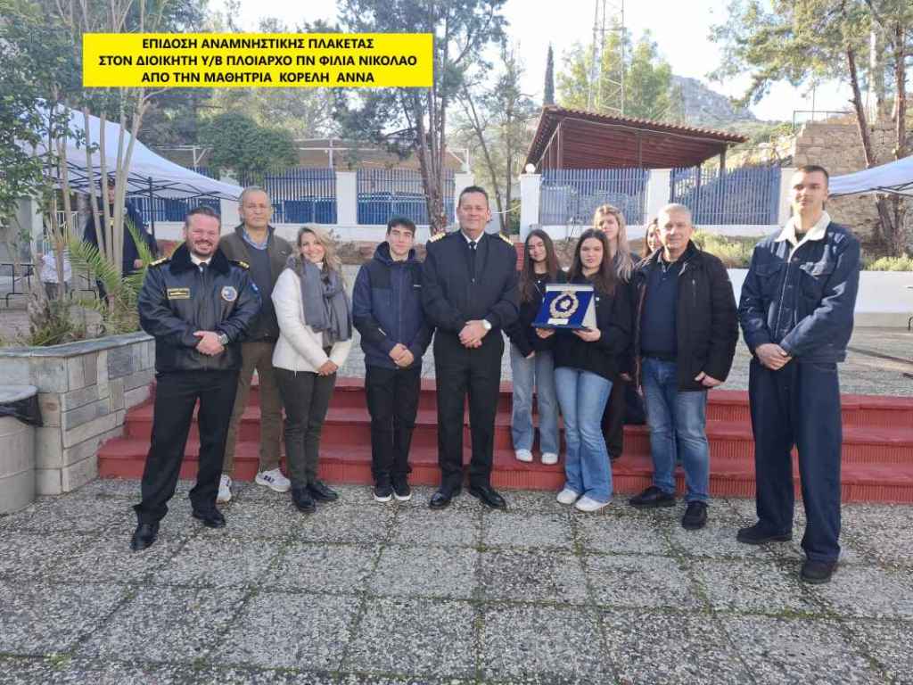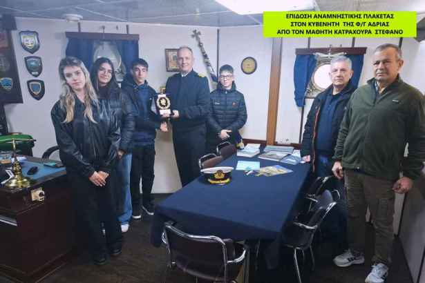 Με την ολοκλήρωση της επίσκεψης στη φρεγάτα, οι μαθητές και η διεύθυνση του σχολείου προσέφεραν αναμνηστικό δώρο στον Κυβερνήτη, ο οποίος με τη σειρά του παρέδωσε τον θυρεό του πλοίου και συμβολικά ενθύμια.