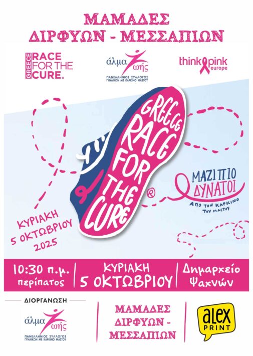 Την Κυριακή 5 Οκτωβρίου, τα Ψαχνά συμμετέχουν ενεργά στη μεγάλη εκστρατεία «Race for the Cure», μέσα από έναν συμβολικό περίπατο που θα ξεκινήσει στις 10:30 π.μ. από το Δημαρχείο της πόλης.