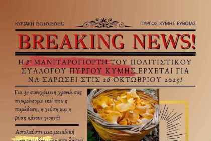 Εύβοια: Η 3η Μανιταρογιορτή Πύργου Κύμης επιστρέφει με άρωμα φύσης και γεύσης!