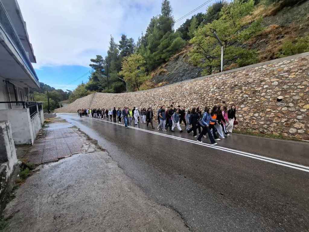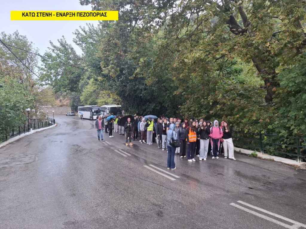 Παράλληλα, η Α΄ Λυκείου με 113 μαθητές και τη συνοδεία οκτώ εκπαιδευτικών, πραγματοποίησε εκπαιδευτικό περίπατο στη Στενή, στο πνεύμα της φυσικής άσκησης. Ακολουθώντας οργανωμένα τους κανόνες ασφαλείας (σήμανση ομάδων, πορεία αντίθετα στα οχήματα, ενδοεπικοινωνία συνοδών), περπάτησαν από την Κάτω έως την Άνω Στενή, διανύοντας απόσταση 2.400 μέτρων. Στη συνέχεια ξεναγήθηκαν στον παλιό οικισμό και παρέμειναν εκεί έως το μεσημέρι για φαγητό και ξεκούραση.