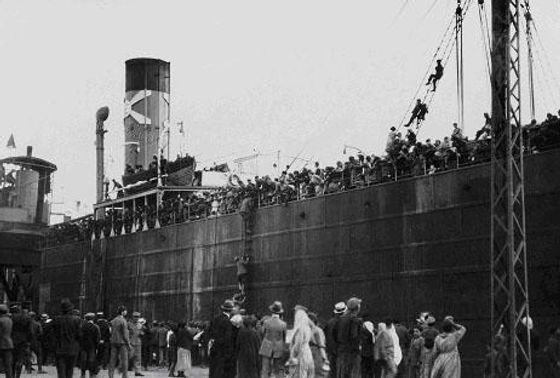 επιβιβαζονται οσοι μπορεσαν στο καράβι και αλλοι σε καΐκια
