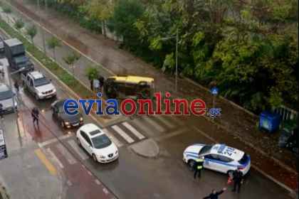 Ανατροπή Ι.Χ. έξω από την Αστυνομική Διεύθυνση Ευβοίας στη Χαλκίδα