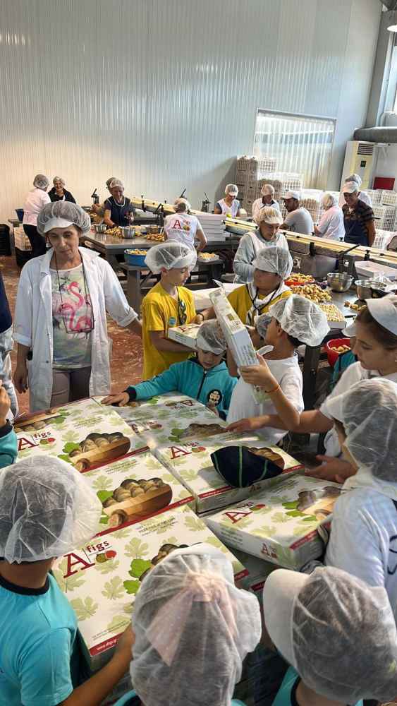 Στο συσκευαστήριο @afigs_co, οι μικροί επισκέπτες συμμετείχαν ενεργά στη διαδικασία, βοηθώντας στη δημιουργία πακέτων σύκων που προορίζονταν για εξαγωγή στη Γερμανία και την Ιταλία. Η θερμή φιλοξενία και η διάθεση συνεργασίας των υπευθύνων δημιούργησαν ένα κλίμα χαράς και ενθουσιασμού.