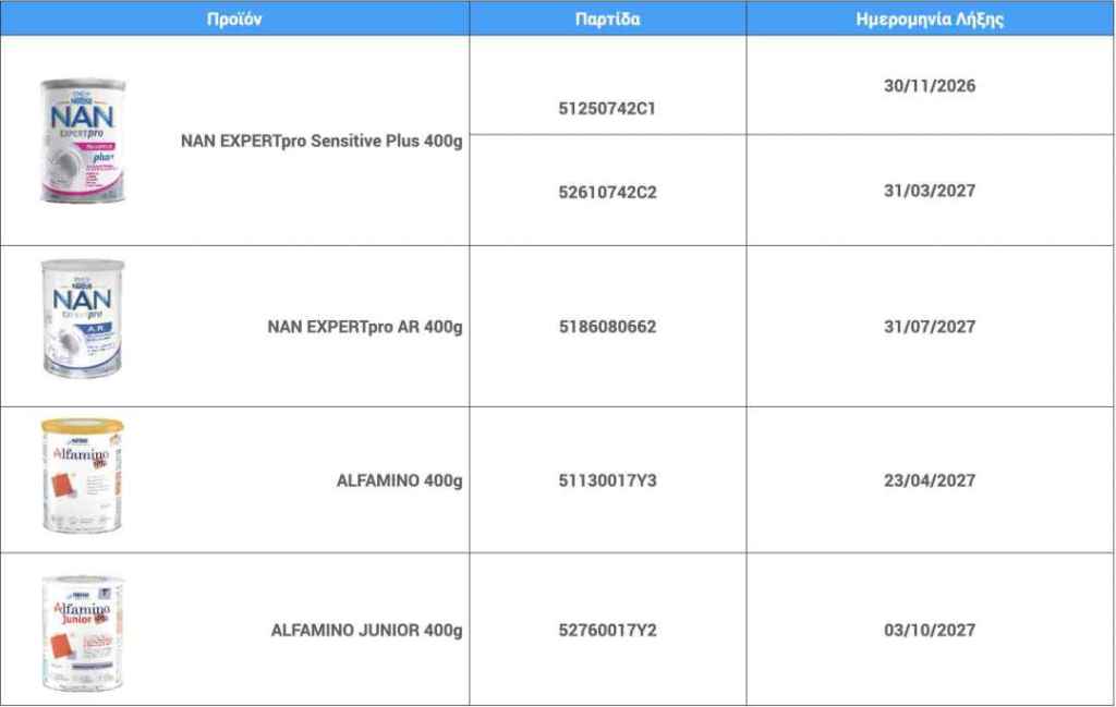 >>> Προσοχή: Η Nestle απέσυρε προϊόντα βρεφικού γάλακτος – Όλη η λίστα