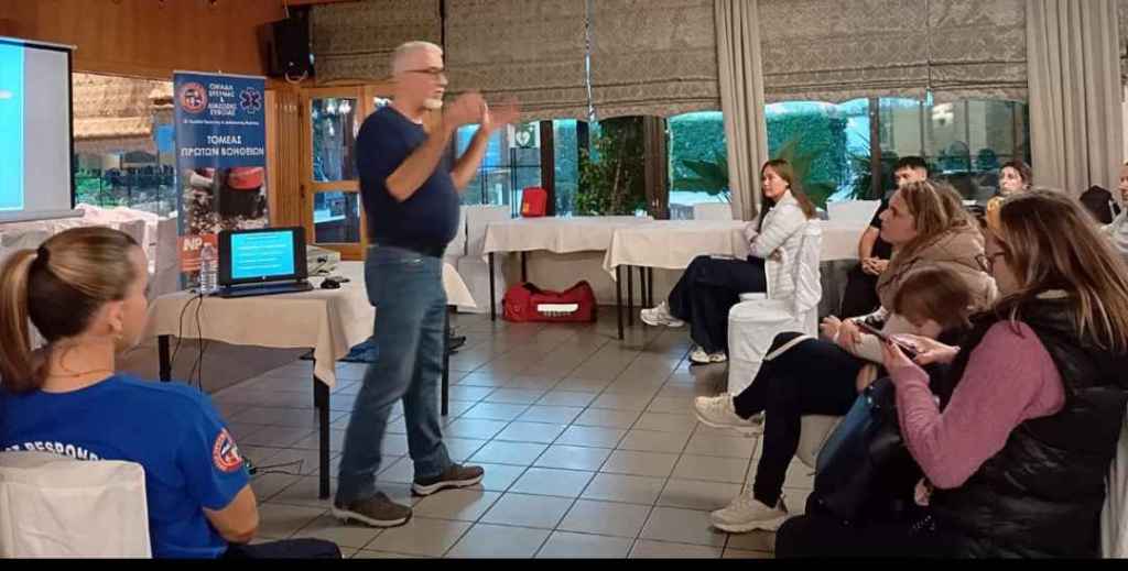 Ενημερωτικό σεμινάριο πρώτων βοηθειών πραγματοποιήθηκε σήμερα Δευτέρα 13 Οκτωβρίου στην Αγία Ελεούσα. Οι συμμετέχοντες ενημερώθηκαν για τα Βασικά πρωτόκολλα υποστήριξης της ζωής αλλά και σε άλλες θεματικές ενότητες των πρώτων βοηθειών.
