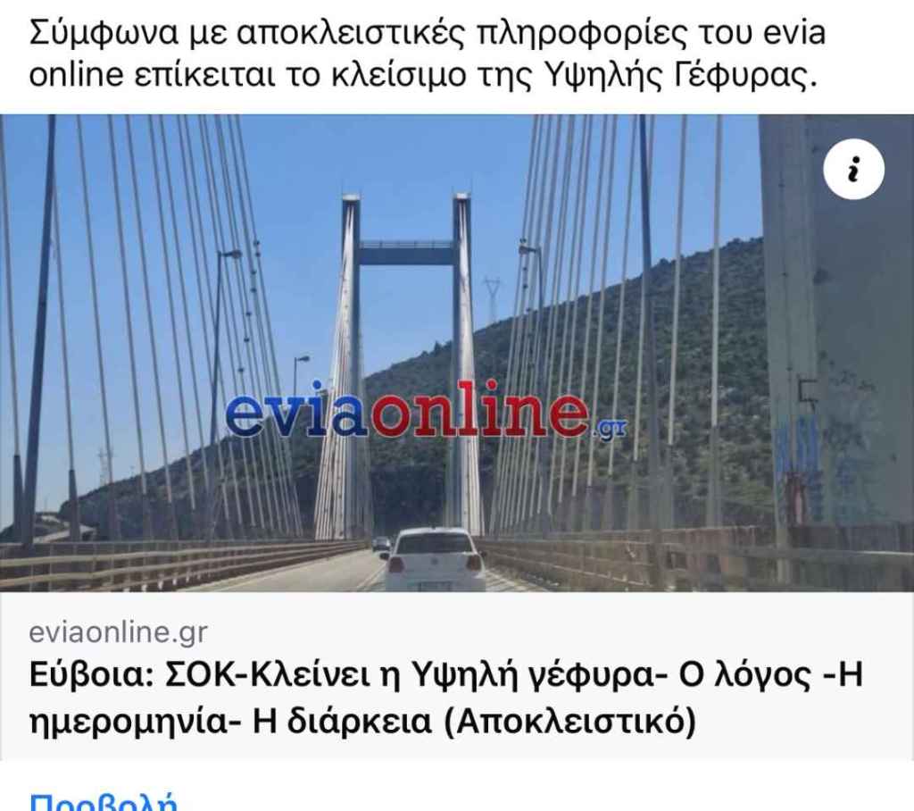 Το θέμα του χρονικού διαστήματος αλλά και των ωρών που θα κλείνει η ροή των αυτοκινήτων στην γέφυρα έχει εξελιχθεί όπως είναι φυσικό σε μείζων καθώς επηρεάζει την ζωή εκατοντάδων χιλιάδων κατοίκων και επισκεπτών και έφερε πρώτο στην δημοσιότητα το evia online .