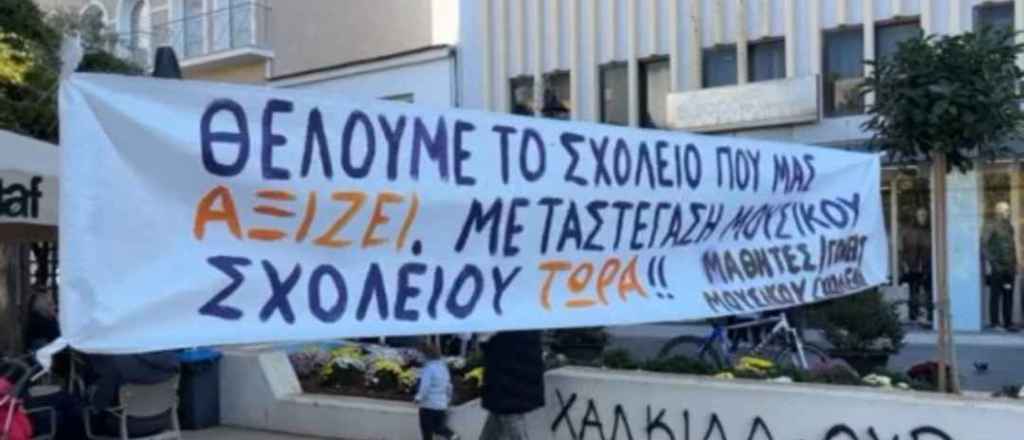 Γονείς, μαθητές και εκπαιδευτικοί διεκδικούν την άμεση παράδοση του νέου κτιρίου του Μουσικού Σχολείου και την ασφαλή μετακίνηση των μαθητών.