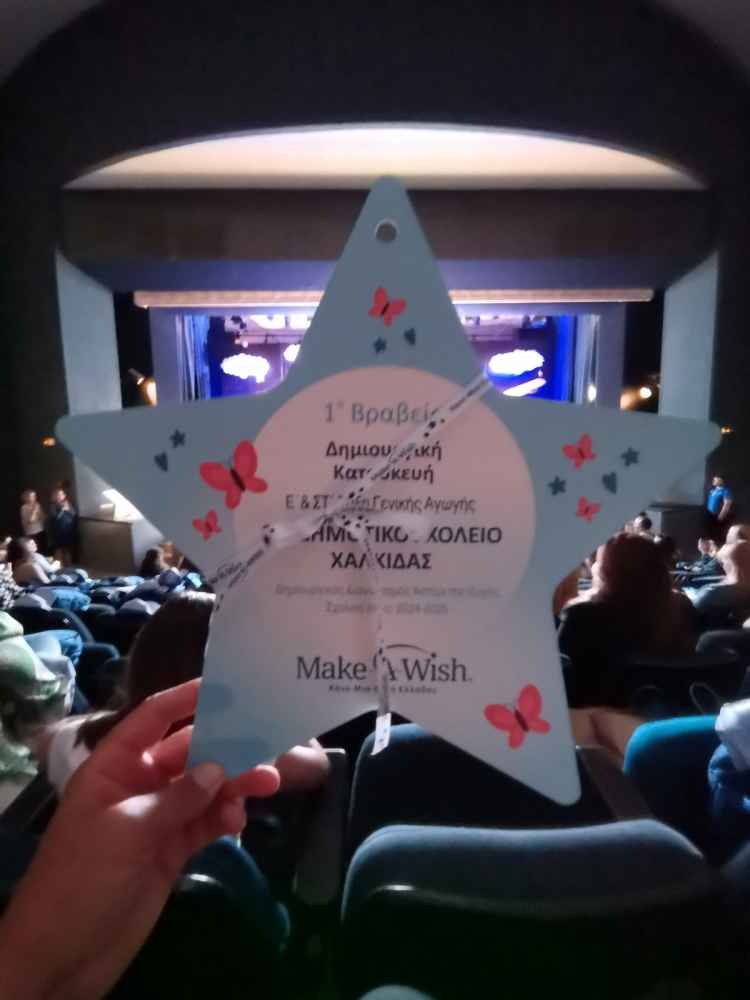 Μια σημαντική διάκριση απέσπασε το 20ό Δημοτικό Σχολείο Χαλκίδας, το οποίο βραβεύτηκε με το 1ο βραβείο από τον οργανισμό Make-A-Wish (Κάνε-Μια-Ευχή Ελλάδος), στο πλαίσιο της δράσης «Αστέρι της Ευχής 2025». Η απονομή πραγματοποιήθηκε σε μια όμορφη τελετή στο Κολέγιο Αθηνών, αφιερωμένη στα παιδιά και στις πράξεις προσφοράς που αλλάζουν ζωές.