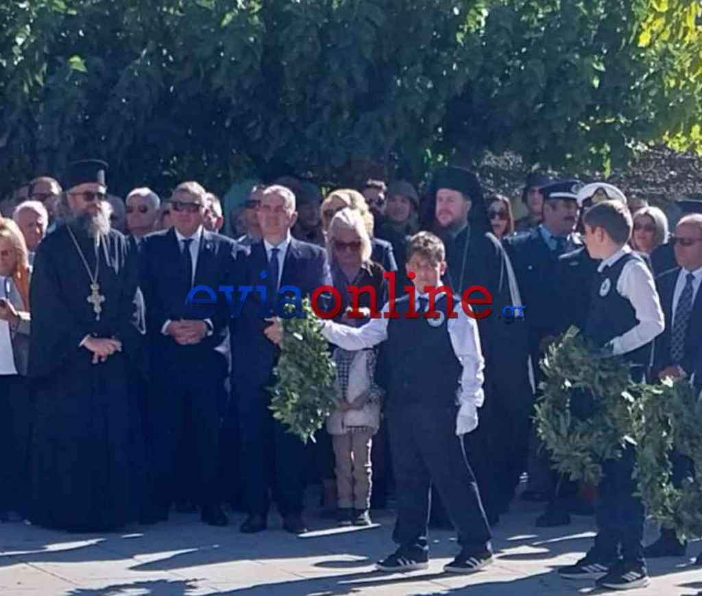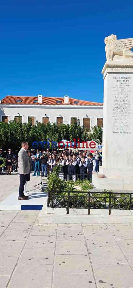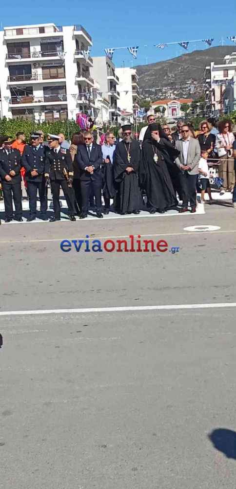 Με λαμπρότητα εορτάζεται στην Κάρυστο η επέτειος του ΟΧΙ στους Ιταλούς και του Αλβανικού έπους που ακολούθησε. Πριν από λίγο μετά την επιμνημόσυνη δέηση, και την κατάθεση στεφάνων στην μνήμη όσων χάθηκαν για την προάσπιση της πατρίδα μας ο Δήμαρχος Λευτέρης Ραβιόλος , ο αντιπεριφερειάρχης Β. Κούκουζας, ο πρόεδρος της κοινότητας Καρύστου Βαγγέλης Σπύρου, εκπρόσωποι των σωμάτων ασφαλείας και φορείς της περιοχής παρακολουθούν την εντυπωσιακή παρέλαση .