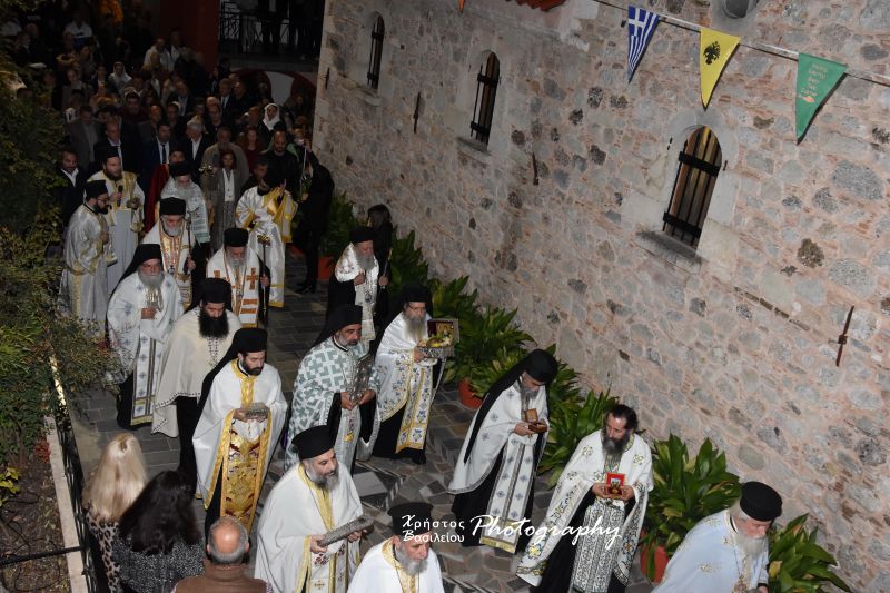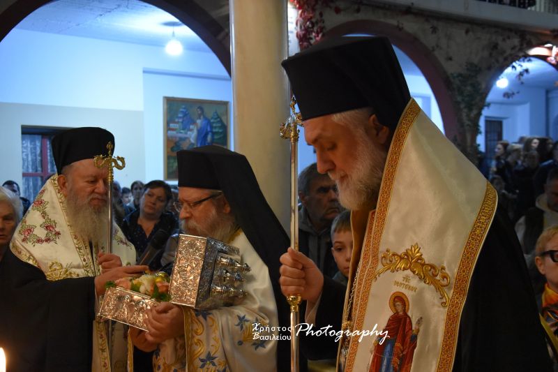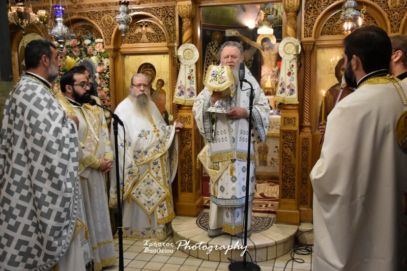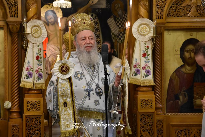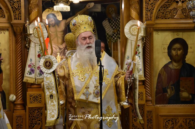 Στον Εσπερινό της παραμονής, χοροστάτησε ο Σεβασμιώτατος Μητροπολίτης Κορίνθου κ. Παύλος, ο οποίος κήρυξε και τον θείο λόγο.