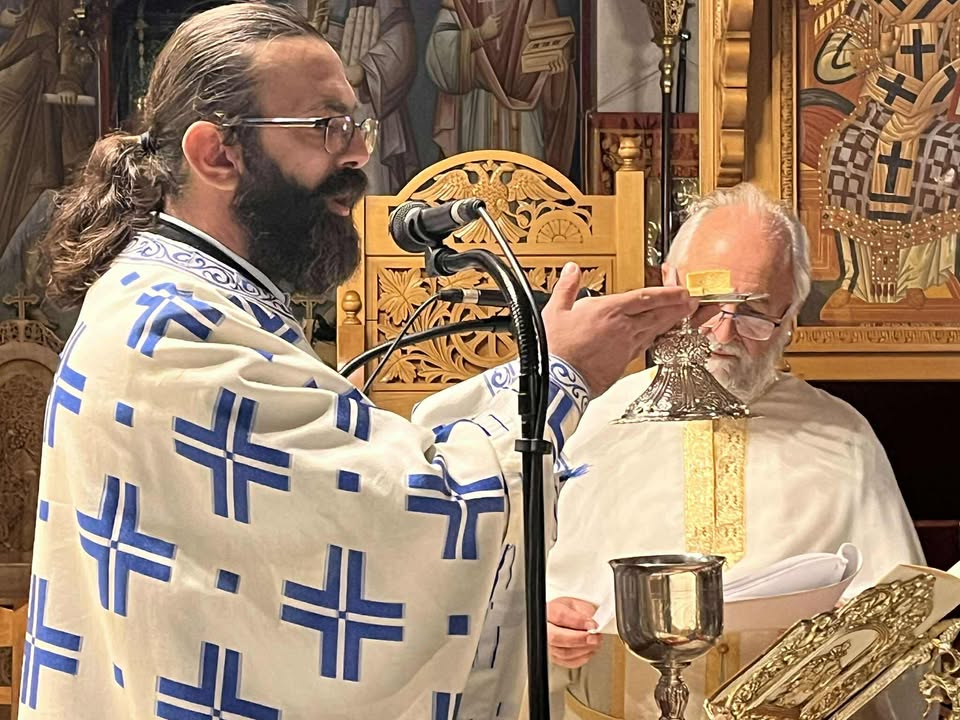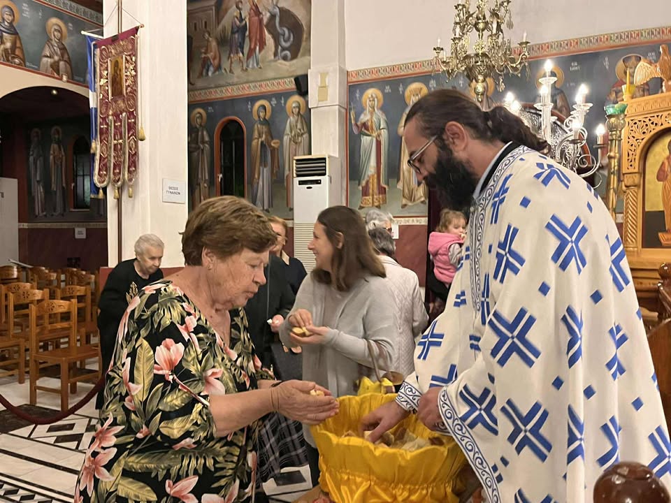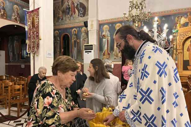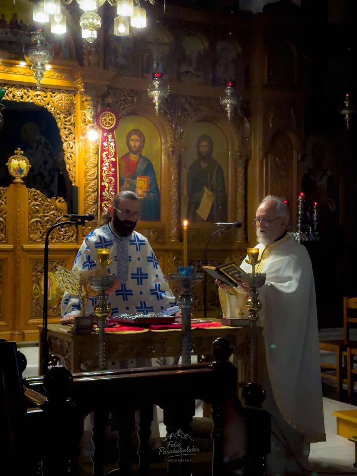 Της ιεράς ακολουθίας προέστη ο Πρωτοπρεσβύτερος π. Χρήστος Νγκέλας, συλλειτουργούντος του π. Νικολάου Αργυρίου, προϊσταμένου του ναού. Η Θεία Λειτουργία τελέστηκε εκτός του Ιερού Βήματος, στον σολέα, ώστε οι πιστοί να βιώσουν πιο άμεσα τη λειτουργική εμπειρία και τη μοναδική αρχαιοπρεπή ατμόσφαιρα.