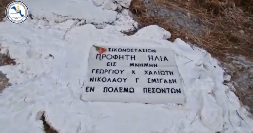 Στο κατώφλι των σκαλοπατιών ένα εικονοστάσι και μια μαρμάρινη επιγραφή ριζωμένη στο βράχο