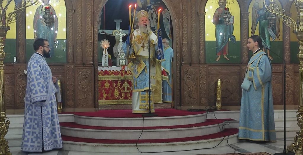 Συλλειτουργοί του Σεβασμιωτάτου ήταν ο αρχιμ. Συμεών Ηλιοδρομίτης-προϊστάμενος της Ενορίας και ο διάκ. Σταύρος Καλαφάτης. Ενώ την ιερά υμνωδία διηκόνησε ο δευτερεύων εφημέριος της Ενορίας οικον. Ιωάννης Φαφούτης.