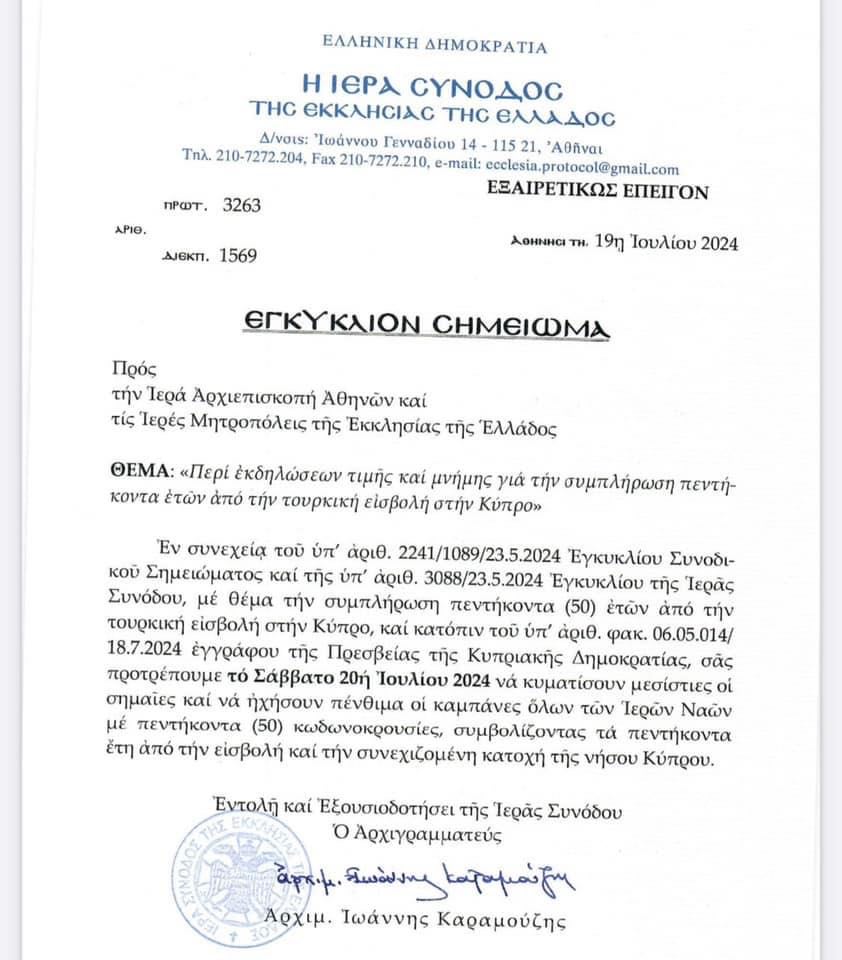 50 φορές ήχησαν πένθιμα οι καμπάνες του Ι.Ν. Αγίου Παντελεήμονος Λ. Αιδηψού σήμερα. Με απόφαση της Ιεράς Συνόδου που πάρθηκε χθες και με αφορμή την συμπλήρωση 50 χρόνων από την Τουρκική εισβολή (και την συνεχόμενη κατοχή) στην Κύπρο, οι καμπάνες σε όλη τη χώρα ήχησαν πένθιμα. Περίπου στις 10:30 το πρωί, ακούστηκαν 50 κωδωνοκρουσίες στον Ιερό Ναό Αγίου Παντελεήμονος Λ. Αιδηψού.