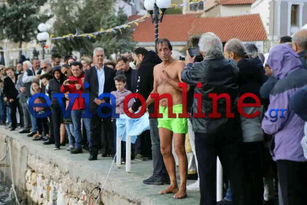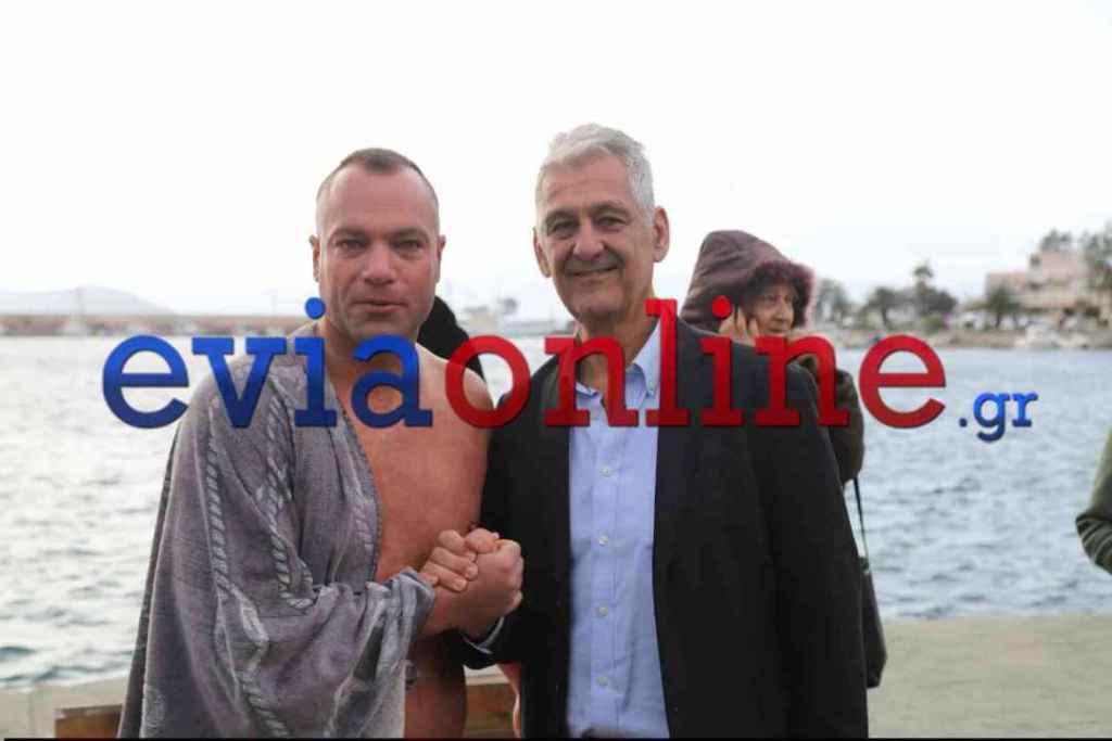 Τον Σταυρό ανέσυρε ο Παύλος Μανώλης, δεχόμενος τις ευχές και τα συγχαρητήρια του Αντιδημάρχου Γιώργου Στρουμπούλη, με τους παρευρισκόμενους να χειροκροτούν θερμά τον νεαρό κολυμβητή.