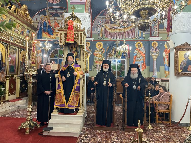 Κατά τον πανηγυρικό Εσπερινό, χοροστάτησε ο Σεβασμιώτατος κ. Αντώνιος, ενώ κήρυξε τον θείο λόγο ο Θεοφιλέστατος κ. Νικόδημος αναφέροντας ότι Η Εκκλησία, με τη σοφία του Αγίου Πνεύματος, δεν προβάλλει τα πρόσωπα των αγίων για να τα θαυμάζουμε από απόσταση, σαν ιστορικά μνημεία ηθικού μεγαλείου, αλλά για να στεκόμαστε απέναντί τους ως καθρέφτες αυτογνωσίας. Οι άγιοι δεν μας αναπαύουν, μας ελέγχουν. Και ο έλεγχος αυτός δεν είναι καταδίκη, αλλά πρόσκληση σε μετάνοια.