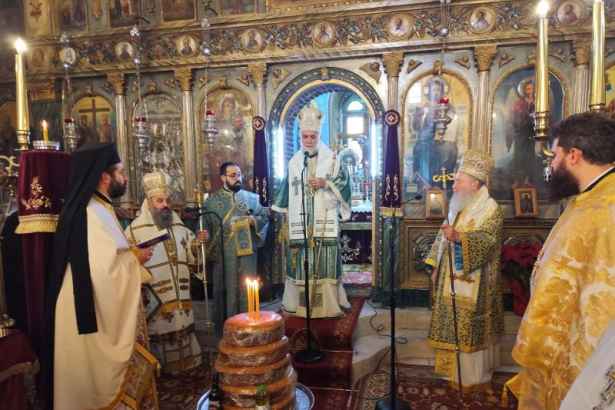 Πριν το «Δι’ ευχών» οι άγιοι Αρχιερείς και οι συλλειτουργοί τους Κληρικοί τέλεσαν το τρίμηνο μνημόσυνο του πατέρα του Σεβασμιωτάτου, μακαριστού Χρήστου Τριανταφύλλου και μνημόσυνα άλλων ενοριτών.