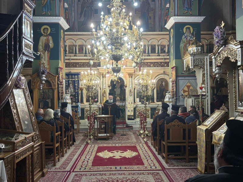 Την Τρίτη το πρωί, ο Σεβασμιώτατος κ. Χρυσόστομος χοροστάτησε κατά τον Όρθρο, προέστη στη θεία Λειτουργία και κήρυξε τον θείο λόγο, επί τη μνήμη του οσίου Πορφυρίου του Καυσοκαλυβίτου, στην Ι. Μονή οσίου Δαυΐδ Γέροντος Λίμνης.