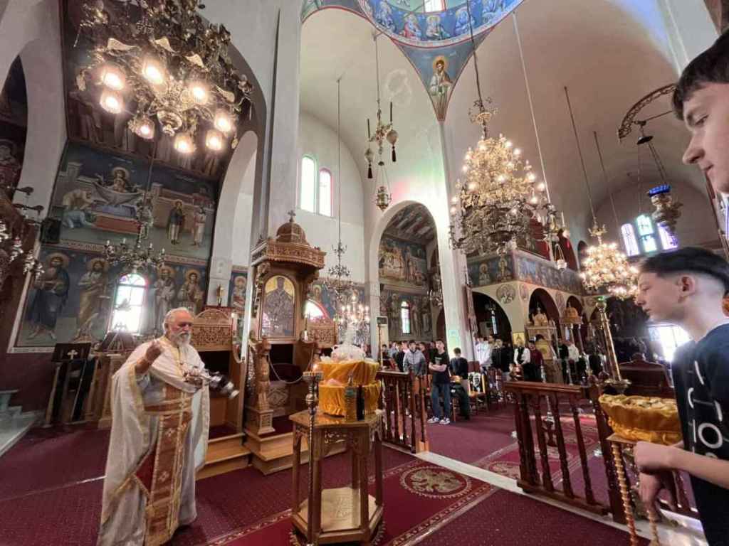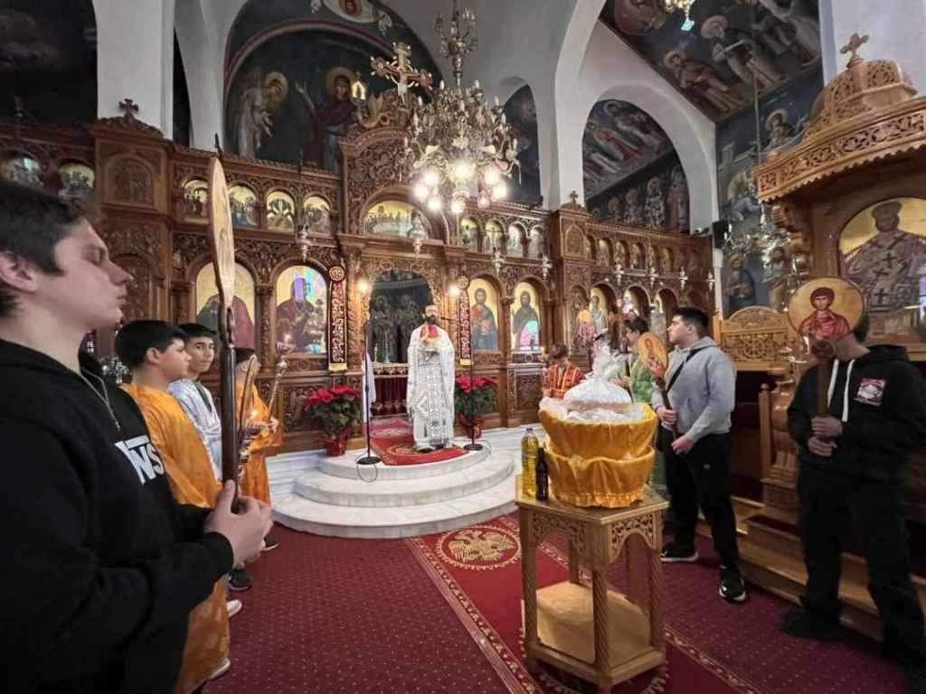 Τη Θεία Λειτουργία τέλεσε ο Πρωτοπρεσβύτερος Χρήστος Νγκέλας, υπεύθυνος Νεότητας της περιοχής, ο οποίος μετέφερε τις ευχές του Σεβασμιωτάτου Μητροπολίτη Χαλκίδος, Ιστιαίας και Βορείων Σποράδων και προέτρεψε τα παιδιά να αντιμετωπίζουν τις προκλήσεις της ζωής με πίστη και ελπίδα. Πριν τη Θεία Κοινωνία, η καθηγήτρια Δήμητρα Πολυμέρου διάβασε την εγκύκλιο της Ιεράς Συνόδου, μεταφέροντας τα μηνύματα των Τριών Ιεραρχών για την αξία της παιδείας και της πνευματικής καλλιέργειας.
