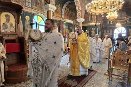 Το πρωί της Δευτέρας του Αγίου Πνεύματος, ο Σεβασμιώτατος κ. Χρυσόστομος χοροστάτησε στον Όρθρο, προέστη στη Θεία Λειτουργία και κήρυξε τον θείο λόγο, στον Ενοριακό Ι. Ναό Αγ. Παρασκευής Αλοννήσου, με συλλειτουργούς τους συνοδούς του Κληρικούς και τον εφημέριο της ενορίας αρχιμ. Λουκά Σταμέλο.