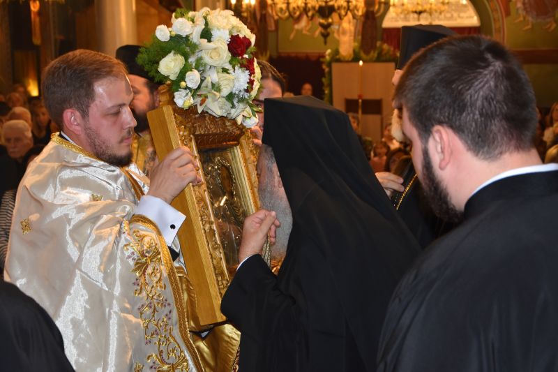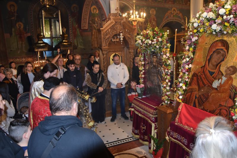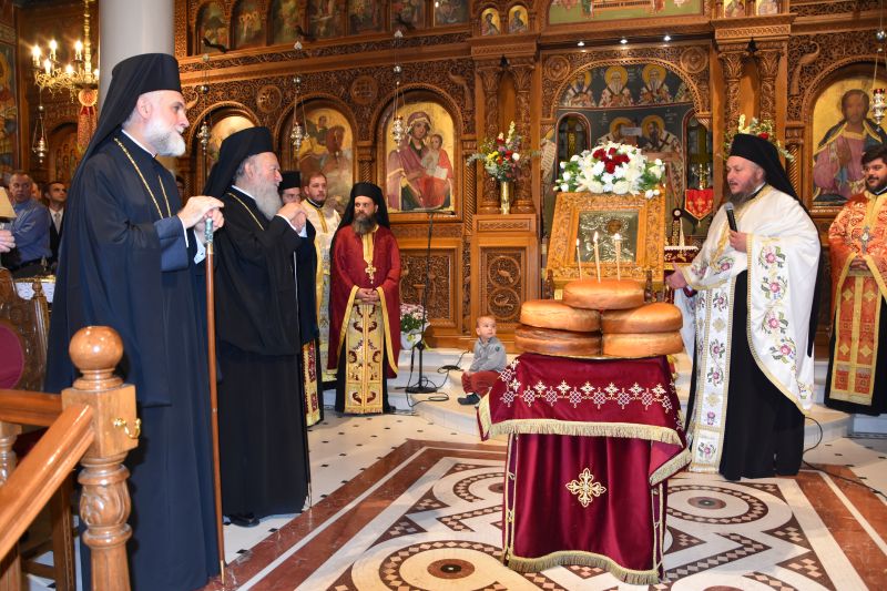 Λίγο πριν την απόλυση ο Σεβασμιώτατος κ. Χρυσόστομος συνεχάρη τον Θεοφιλέστατο κ. Ιωάννη για την παρουσία του, την συμμετοχή του στην πανήγυρη και τους εμπνευσμένους και αρίστους λόγους του. Ευχαρίστησε τον Σεβασμιώτατο Μητροπολίτη Θεσσαλονίκης, για την ευλογία που παρείχε, ώστε να φιλοξενηθεί, κατ’ αυτάς, η ι. εικόνα της Παναγίας Ελεούσης εκ της Ι. Μονής αγ. Θεοδώρας Θεσσαλονίκης.