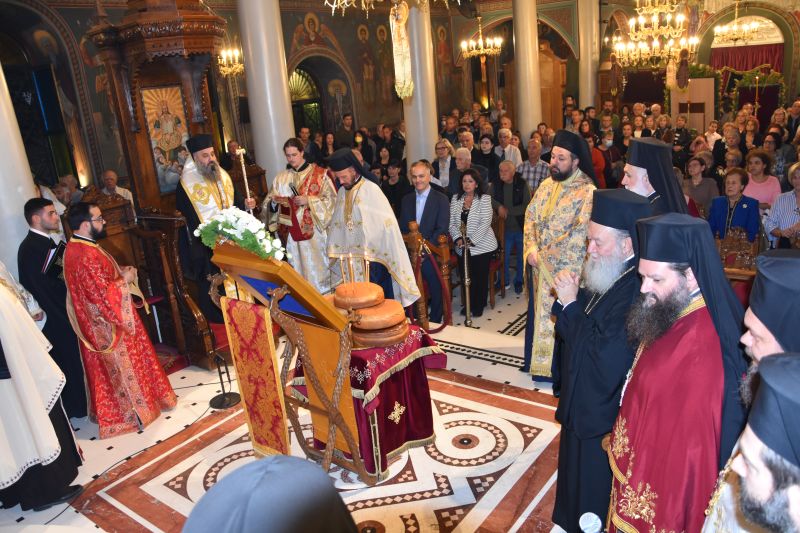 Ευχαρίστησε επίσης τον συμπαραστάτη του στην διακονία της Ι. Μητροπόλεως, Θεοφιλέστατο Επίσκοπο Σκοπέλου κ. Νικόδημο, για τη συμμετοχή του στον εορτασμό και συνεχάρη τον προϊστάμενο της Ενορίας αρχιμ. Αιμιλιανό Χρήστου, τους συνεφημερίους του και τους περί αυτούς λαϊκούς εθελοντές της επιτυχημένης διεξαγωγής των ΛΓ΄ Δημητρίων και την ετοιμασία της πανηγύρεως, ενώ ευχήθηκε πατρικά σε όσες και όσους εορτάζουν και ευχαρίστησε, για την παρουσία τους, τους αιρετούς άρχοντες και τους πολυάριθμους προσκυνητές της Παναγίας και του μυροβλήτη αγίου.