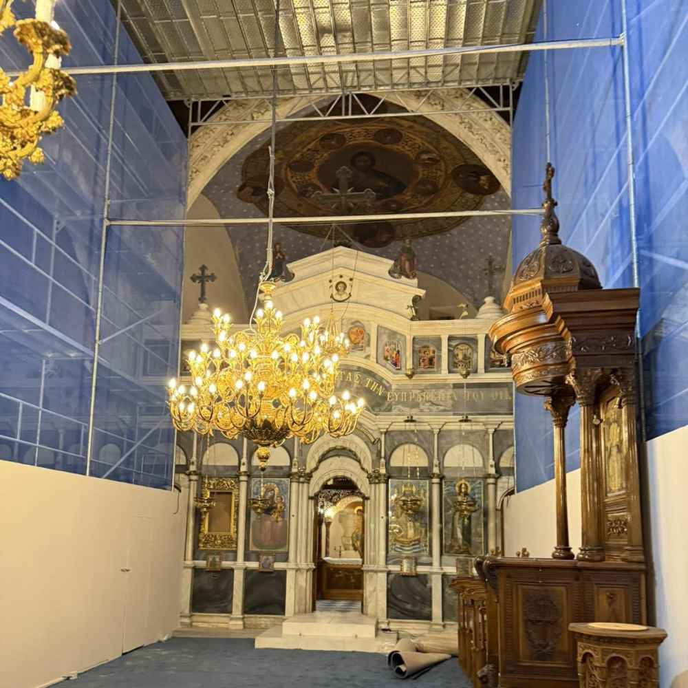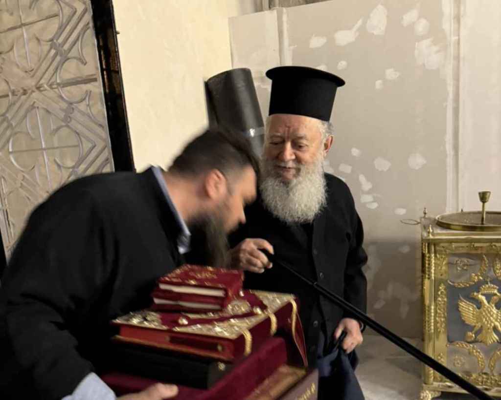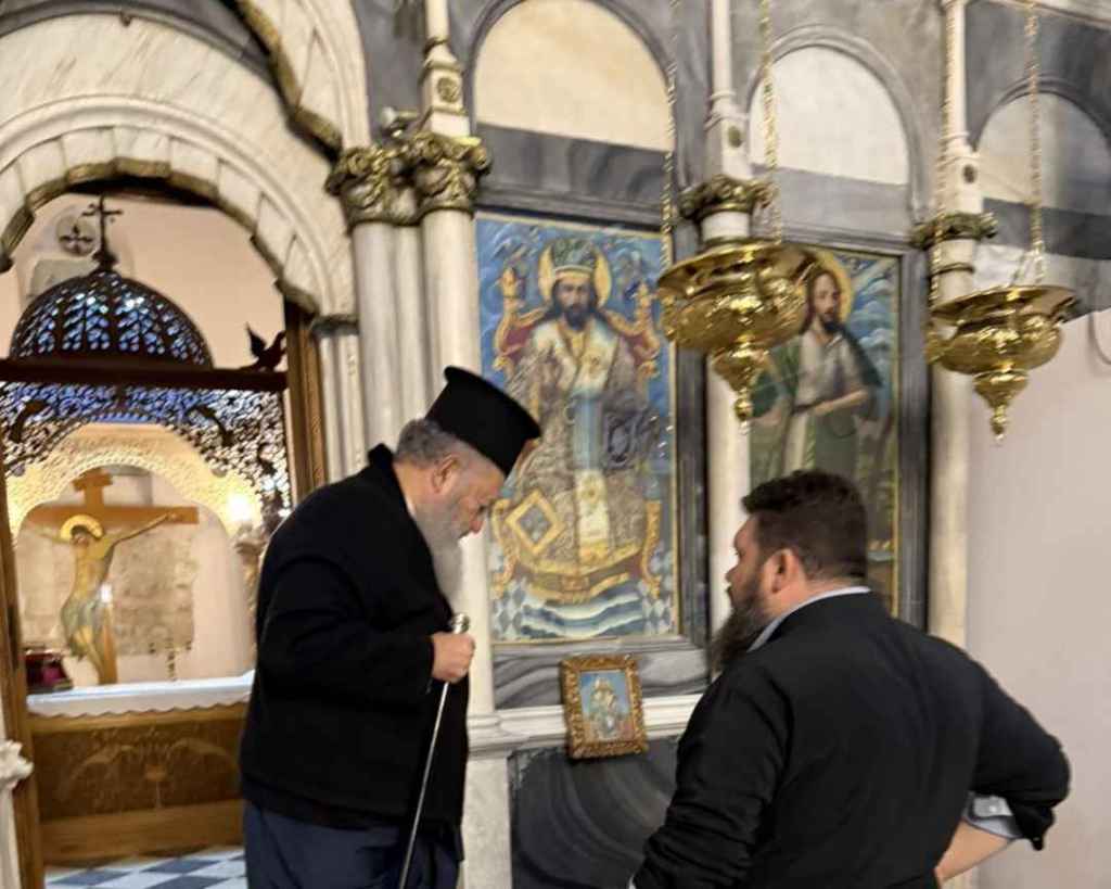 Εκεί, ο προϊστάμενος της Ενορίας, αρχιμ. Συμεών Ηλιοδρομίτης τον ενημέρωσε για την πορεία των ετοιμασιών και τον πληροφόρησε για την συγκινητική συμμετοχή εθελοντών ώστε σε λιγότερο από δέκα ημέρες ο Ι. Ναός να δεχθεί τους ενορίτες του και τον ίδιο τον Σεβασμιώτατο Ποιμενάρχη μας, αφού, συν Θεώ, εκεί θα χοροστατήσει κατά τον Όρθρο και θα προεξάρχει κατά τη Θεία Λειτουργία των Χριστουγέννων.