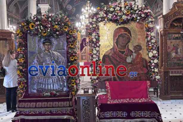 Πλήθος πιστών συρρέει στον Ι.Ν. Αγίου Δημητρίου για να προσκυνήσει την θαυματουργή εικόνα της Παναγίας Ελεούσας που έφτασε με όλες τις τιμές από την Θεσσαλονίκη για τα ΛΓ΄Δημήτρια το απόγευμα της Παρασκευής 18 Οκτωβρίου και παρουσίασε το evia online.